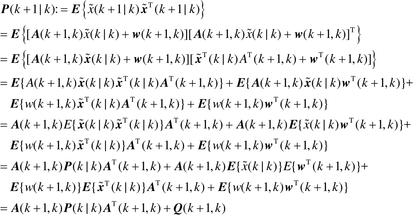 (4)计算状态变量 x ( k +1) 的估计误差协方差矩阵。