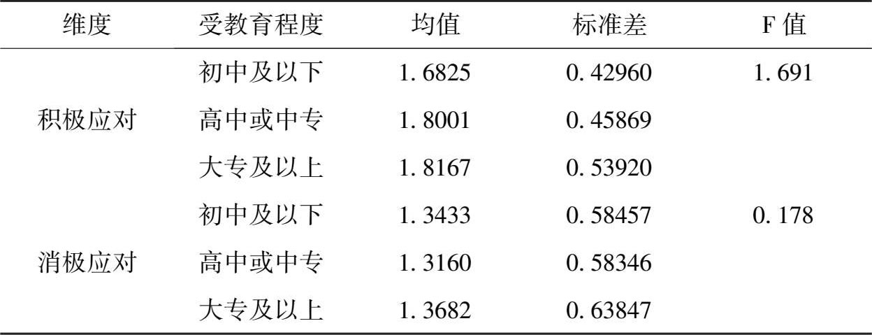表1.5 不同受教育程度基层消防官兵应对方式情况比较