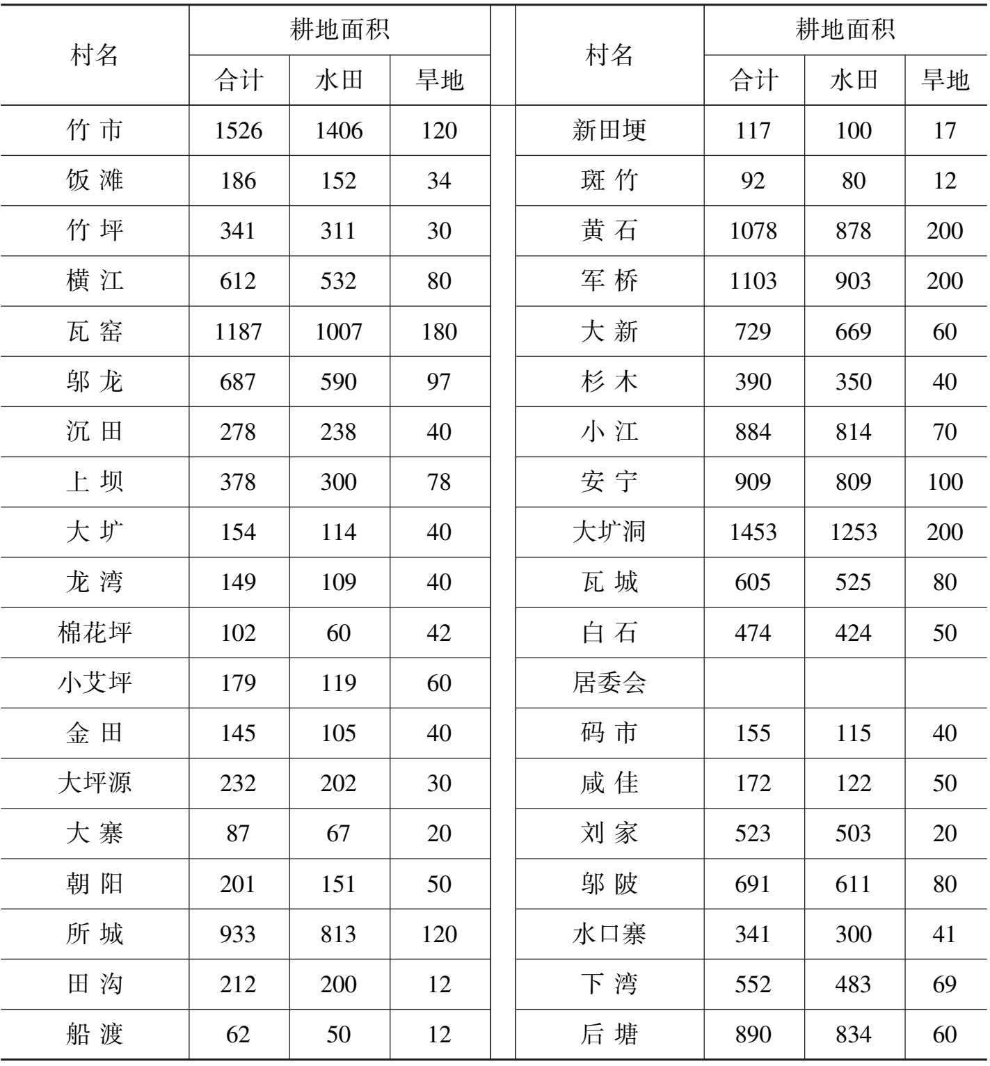 表1—1—1 码市镇2012年耕地情况表