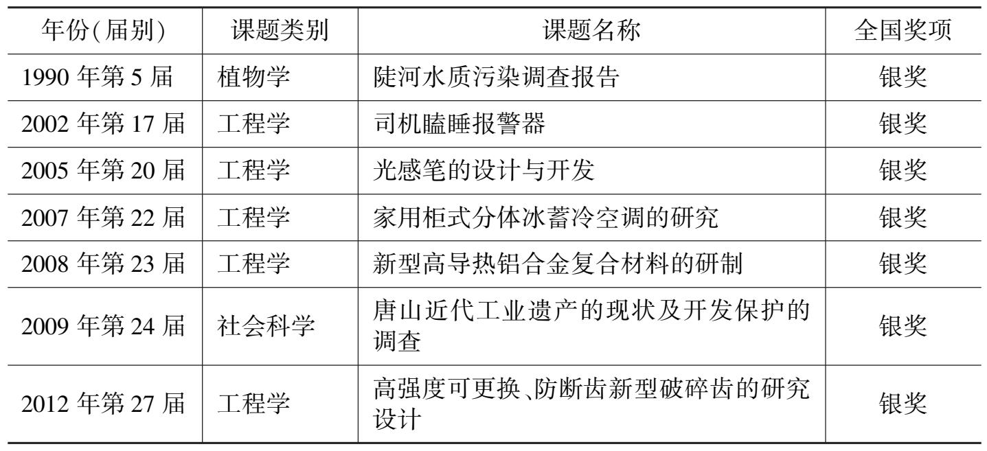 在由省科协、省教育厅、省科技厅等七部门联合主办的河北省青少年科技创新大赛中,我校学生项目共获得一等奖 479 项,这些作品的作者共约 700 名同学均获得高考加分及自主招生的优惠,有王天辰、谢行思、王昊鹏、李佳凝等近 200位同学通过自主招生顺利进入北大、人大、南开、同济等名校。特别是近五年来,我校取得了辉煌成绩:2009 年第 24 届我校 28 项学生作品获得了省一等奖,34 名学生获得金牌;2010 年第 25 届我校 37 项学生作品获得了省一等奖,52 名学生获得金牌;2011 年第 26 届我校 46 项学生作品获得了省一等奖,68 名学生夺得金牌;2012 年第 27 届我校 62 项学生作品获得了省一等奖,98 名学生夺得金牌;2013 年第 28 届我校 63 项学生作品获得了省一等奖,89 名学生夺得金牌;2014 年第 29 届我校 52 项学生作品获得了省一等奖,75 名学生夺得金牌;2015 年第 30 届我校 53项学生作品获得了省一等奖,76 名学生夺得金牌;2016 年第 31 届我校 45 项学生作品获得省一等奖,70 人夺得金牌;2017 年第 32 届我校 45 项学生作品获得省一等奖,59 人夺得金牌,实现九连冠!