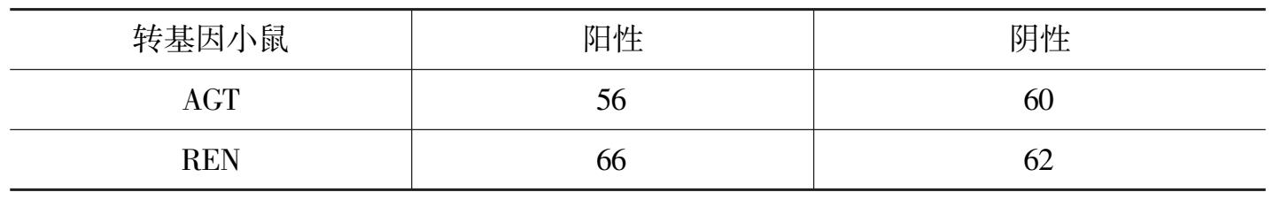 表 3 人AGT和REN杂合子转基因小鼠的筛选结果