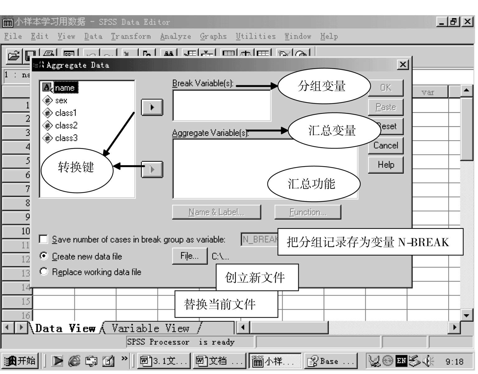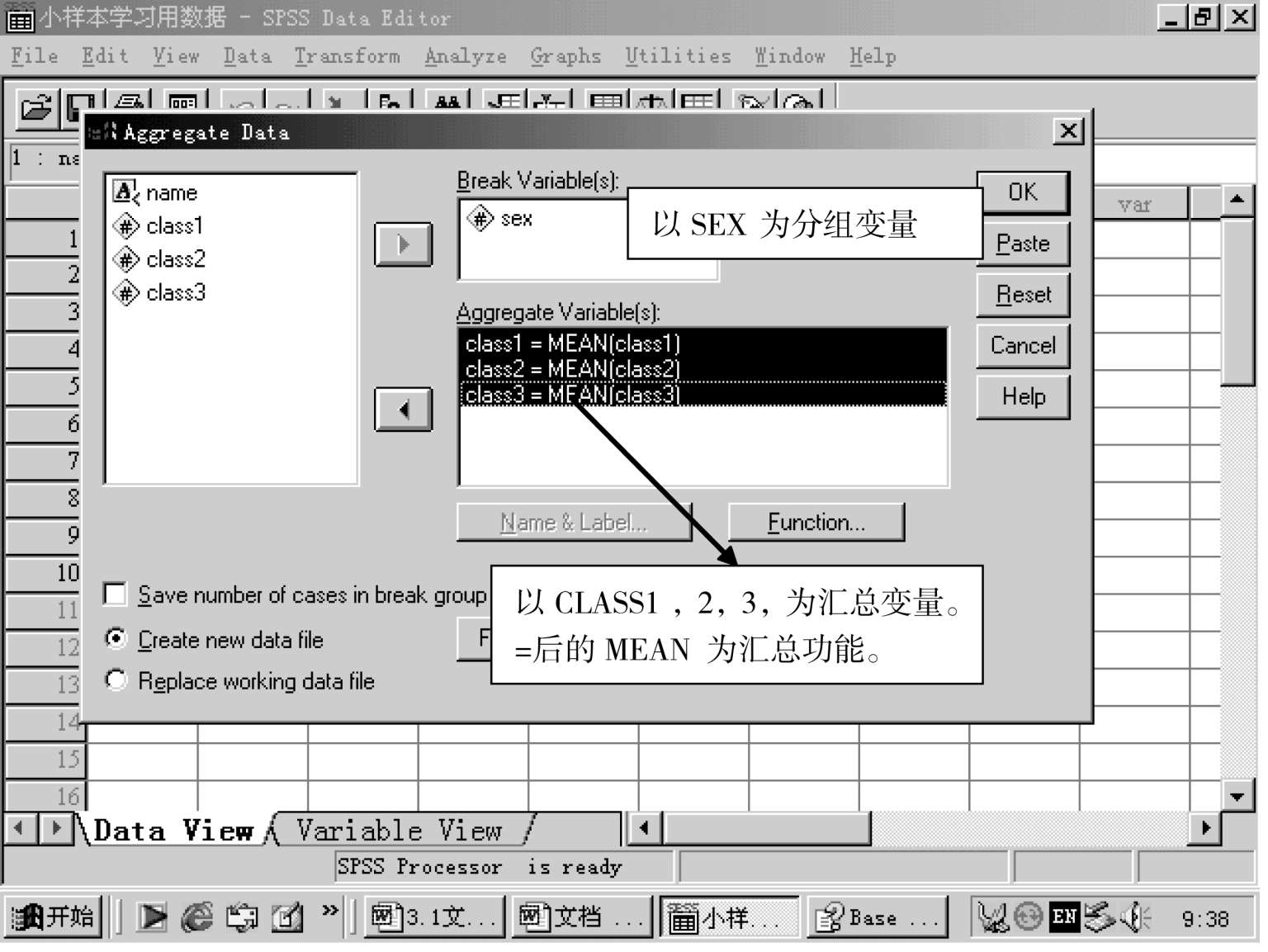 分类汇总,是在同一文件中,以某变量为分组变量,将其它的变量汇总在一个大组变量中。