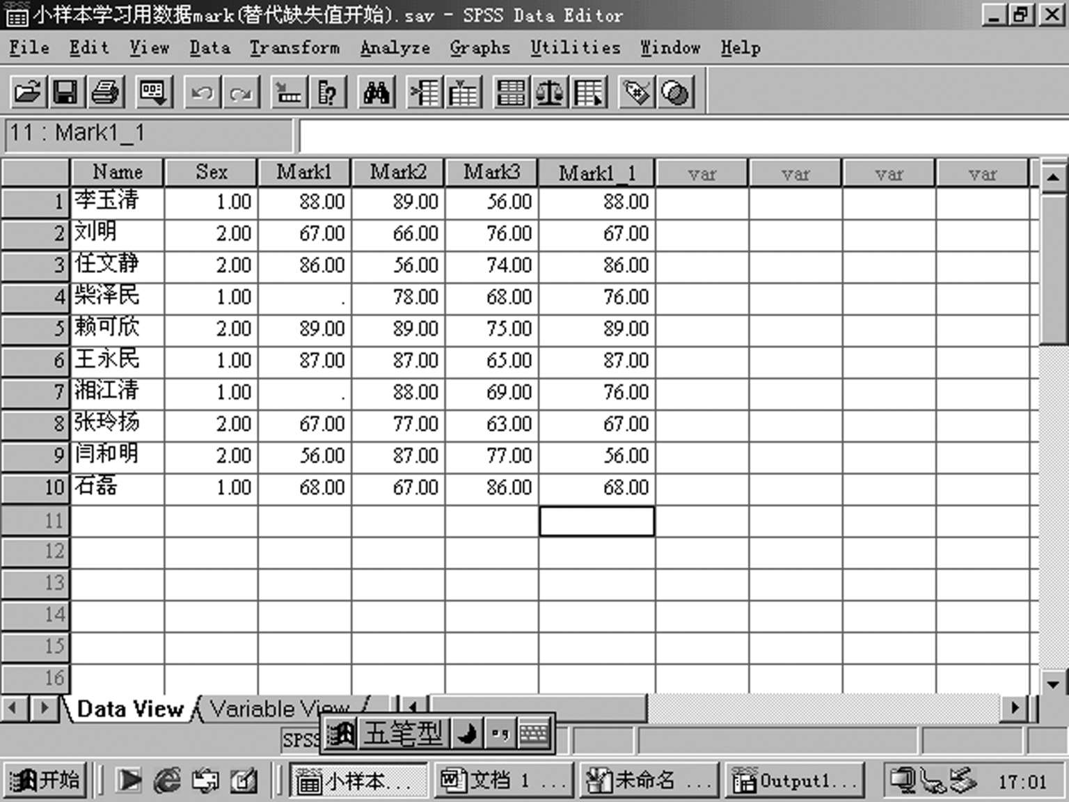 在输入数据时,漏登了数据,面产生缺失值。在考试的时候,没有参加的;在问卷调查时,没有填写的,都会出现数据。没有了数据,没法分析。数据不全时,量小没有多大影调,钽是若有大量的缺失值,分析的结果就不可靠了。所以要对缺失值进行处理。