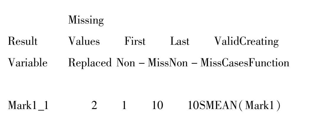 这是替代值的描述。有 2 个替代,10 个有数据,10 个记录。替代方法:均值。