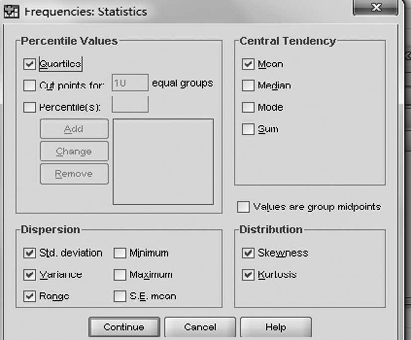 设置种种统计,就是要根据需要进行设置。这种设置就是象计算前的准备,OK后就象等于号“= ”,一点结果就出来了。SPSS的好处就是我们不用计算。但是必须设置好。要设置好,就必须懂得的的各种设置。这是困难的所在,要花大量的时间学习设置。第二大难点就是把统计结果与设置结合在一起,即把统计与自己的专业经验相结合,对统计结果做出合理的解释。
