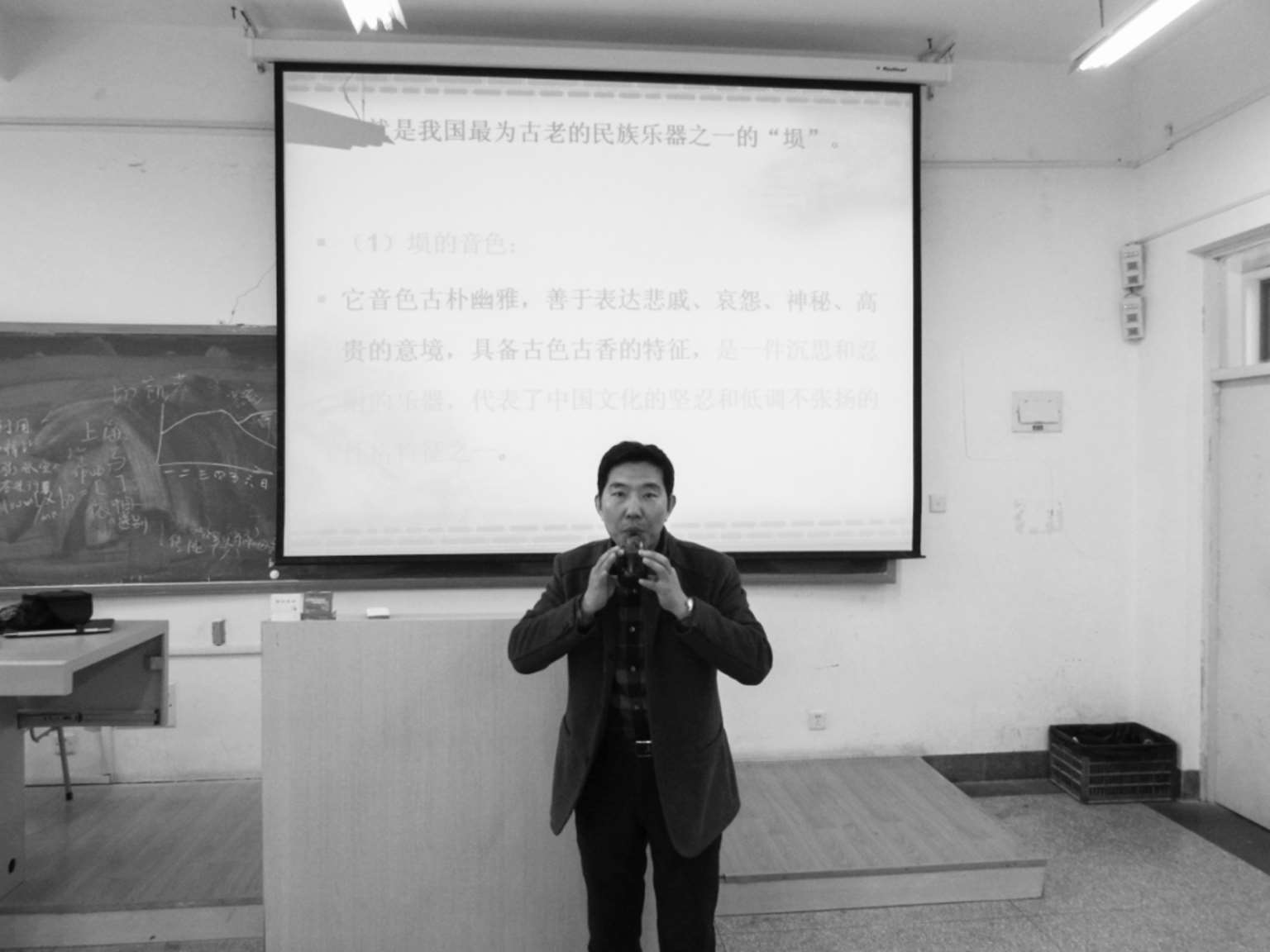 图1-1 埙演奏《阳光三叠》。(本书作者在课堂教学中示范演奏)