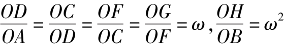 (3)上面的正方形 ABFE 、 EDHG 、 CHJI 、…,构成一正方形漩涡,其边长组成等比数列: ω , ω 2 , ω 3 ,…,其面积和为矩形面积 ω (这给级数和 ω 2 + ω 4 + ω 6 +…﹦ ω 以几何解释);