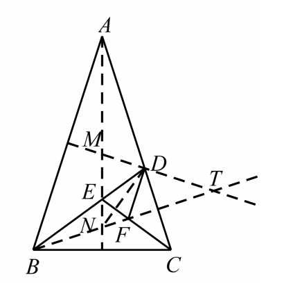 (4)三角形串中△ n 、△ n +1 、△ n +3 的底边上的三条高共点(如图3-12,△ ABC 、△ BCD 、△ DEF 底边上的高 MN 、 NT 、 DN 共点);