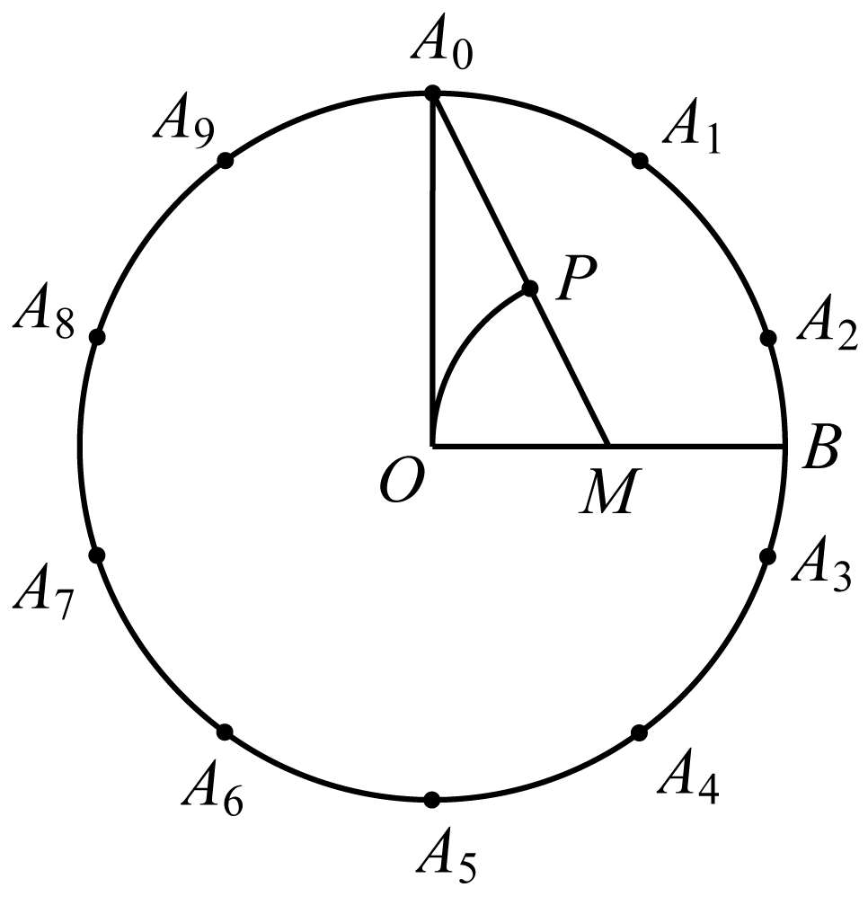 (4)从 A 0 起,以 A 0 P 为半径,在☉ O 上逐次截取可得 A 1 、 A 2 、 A 3 、…、 A 9 ,则 A 0 、 A 1 、 A 2 、…、 A 9 将☉ O 十等分.
