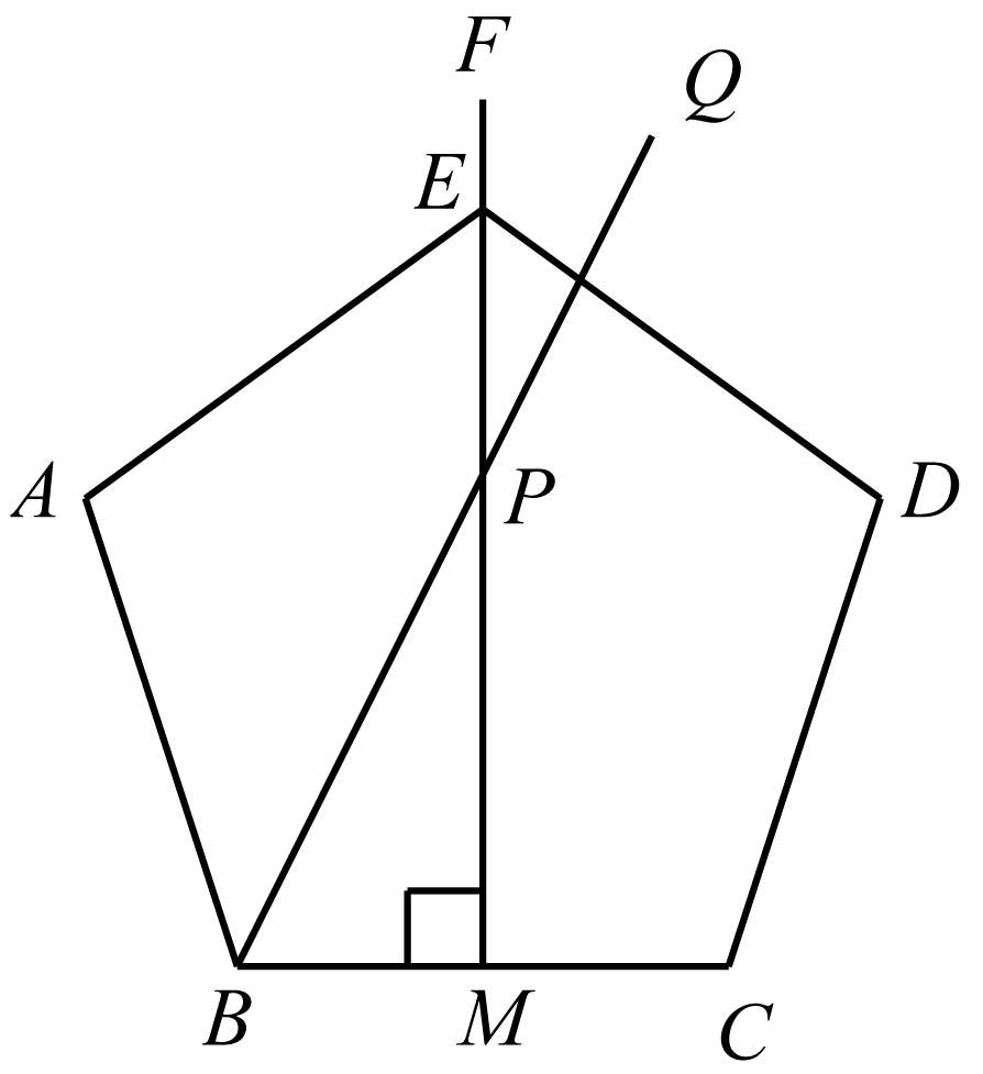 (4)以 B 为圆心, BQ 为半径画弧交 MF 于 E ,则 E 为正五边形顶点之一;