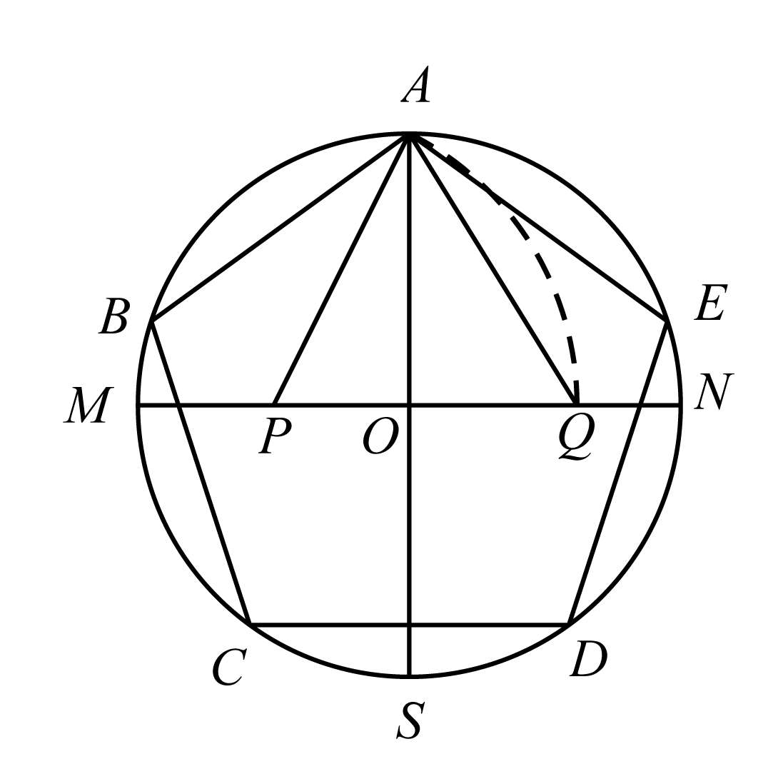 (4)以 AQ 之长在圆周上依次截取可得分点 A 、 B 、 C 、 D 、 E ;