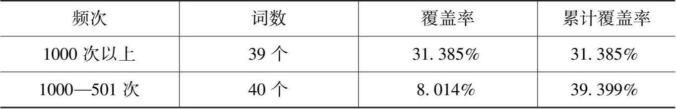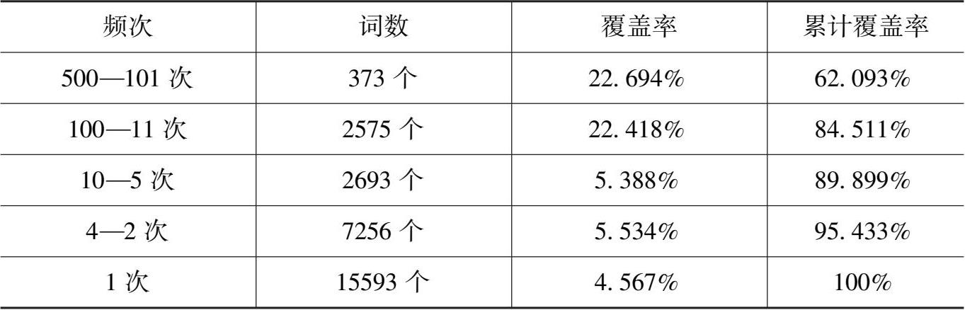 表 2-2 《歧路灯》词频统计和覆盖率一览表: