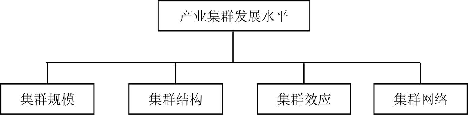 按照上述分析,本文将产业集群发展水平的评价维度确立为集群规模、集群结构、集群效应和集群网络四个方面,从而构建产业集群发展水平的评价模型,如图 3-1 所示。