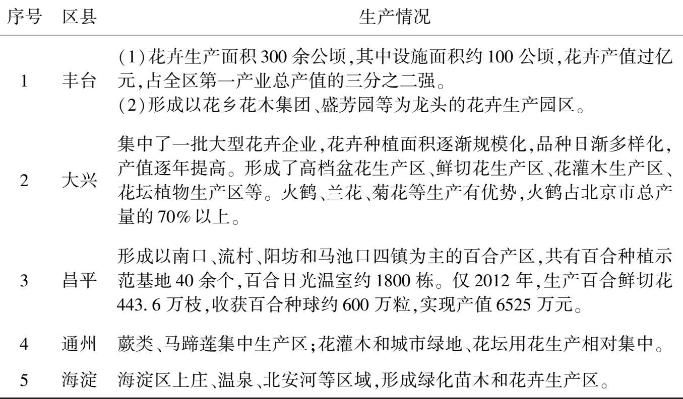表 2 -7 北京市主要花卉生产区