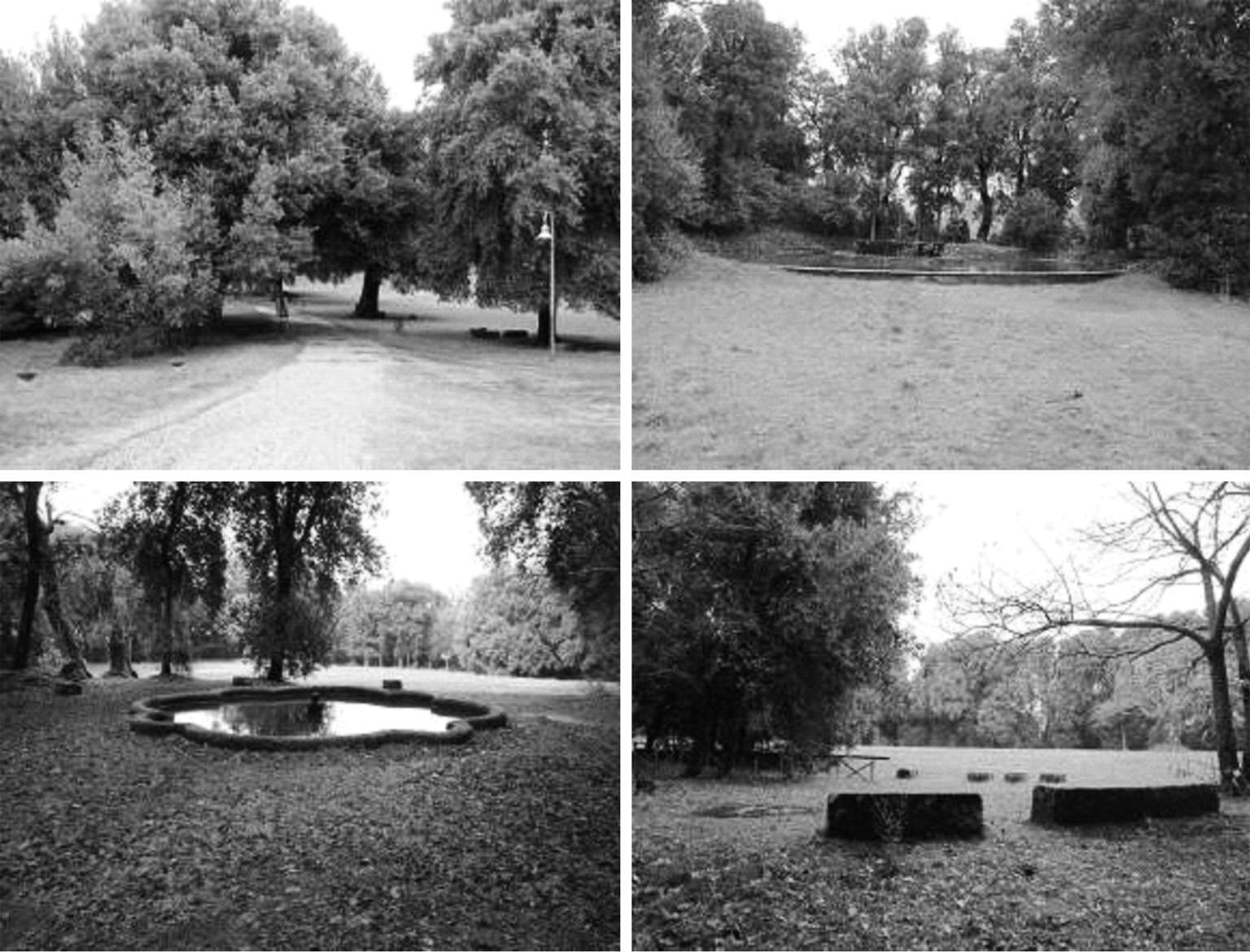 “早秋惊落叶,飘零似客心”,静静地漫步于朗特别墅庄园的丛林景观中,一种焕然一新的激动感触涌上心头,脚踩着秋冬的落叶,细细碎碎,带着疲倦,卷走忧伤,如同走在家乡熟悉的路旁;呼吸着草木的芳香,思绪沉静又浮想联翩,偶有几只野猫擦身而过,没有打扰,没有惊慌,只有相视而望的平淡,如行走于江湖的侠客,再重逢只余一笑;“一泓镜水谁能羡,自有胸中万顷湖”,林中隐秘的泉池,淡泊如镜,虽无微澜却生机勃勃,再繁杂的心绪都可以放下,只因不愿荒废这一片寂静;林中偶见草地开阔处,芳草萋萋,柔软如毯,视线开阔而通达,空间宽广而明亮,沐浴着阳光可尽享自然之乐;林间粗糙的石凳围合成大大小小的剧场,风格狂野却古风淳朴,线条虽不精确却不失古典韵味,可以想象文艺复兴时期的庄园主人邀请朋友在林间促膝而谈的欢愉场景,而今这片静谧的场地却成为野生动物栖息的佳境(图3-5)。丛林景观的出现突破了人文主义的局限,迫使人们暂时忘记了权利和欲望,忘记了人的优越感,在芬芳馥郁、平淡隐逸的环境中重新认识自然,体味自然,在欣赏自然之境的同时也开始体会生活,沟通心灵,展现浪漫的生活理想。