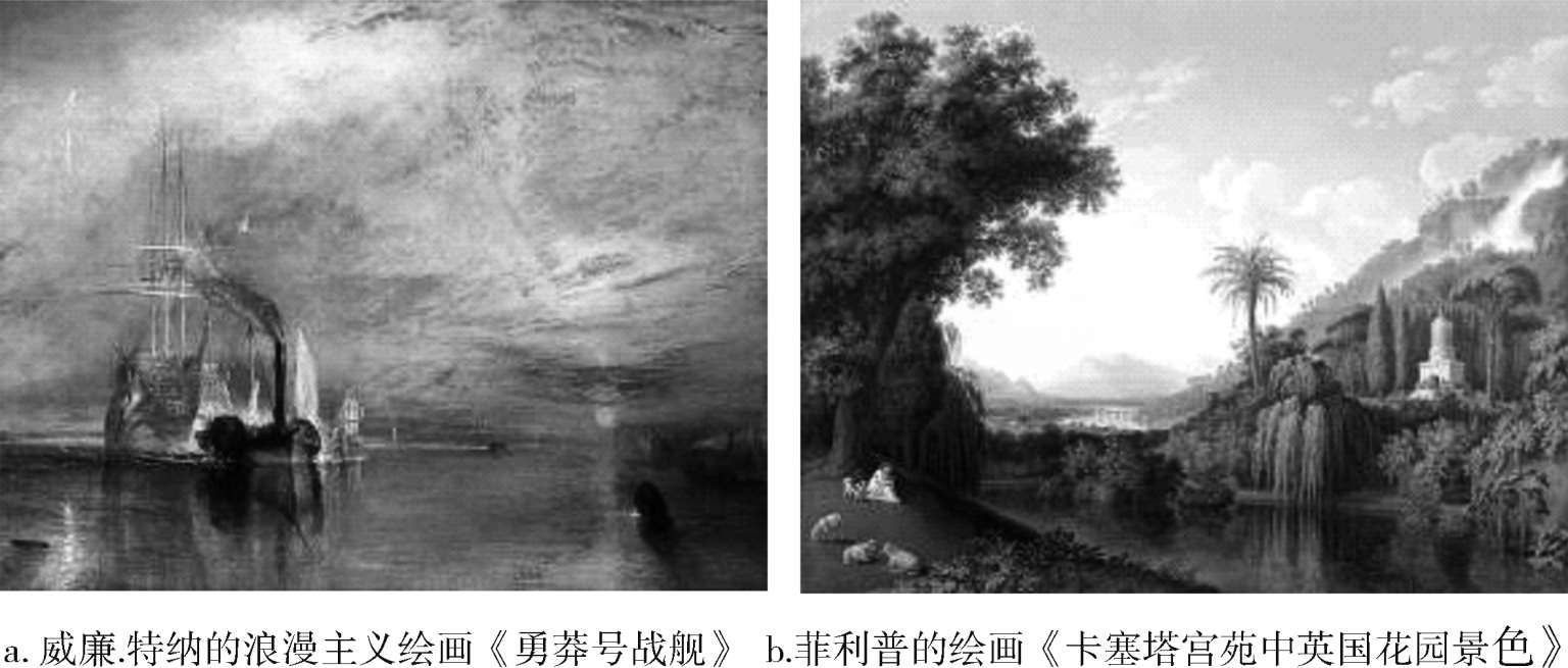 图3-10浪漫主义的绘画及绘画中的自然风景式园林景色