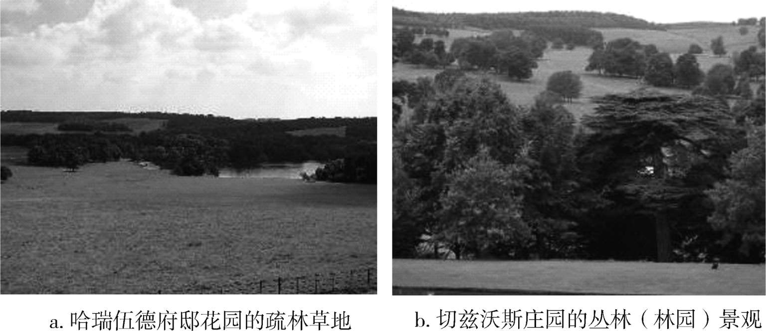 ”,以追求风景园林的自由与灵性,反对专制政治的压抑,并要求在园林中抒发个人的情感而反对理性的教条和文明的束缚,推崇风景园林的自然野态。这些审美理想体现在风景园林中,表现为更加舒展、开阔、亲切、清新的自然景观模拟,而自然主义的自然观也取代了经验主义的自然观。