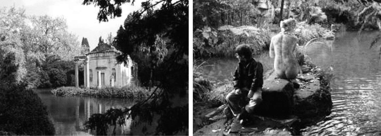 图3-9 卡塞塔宫苑中英国花园遗留的残垣断壁和雕塑遗迹