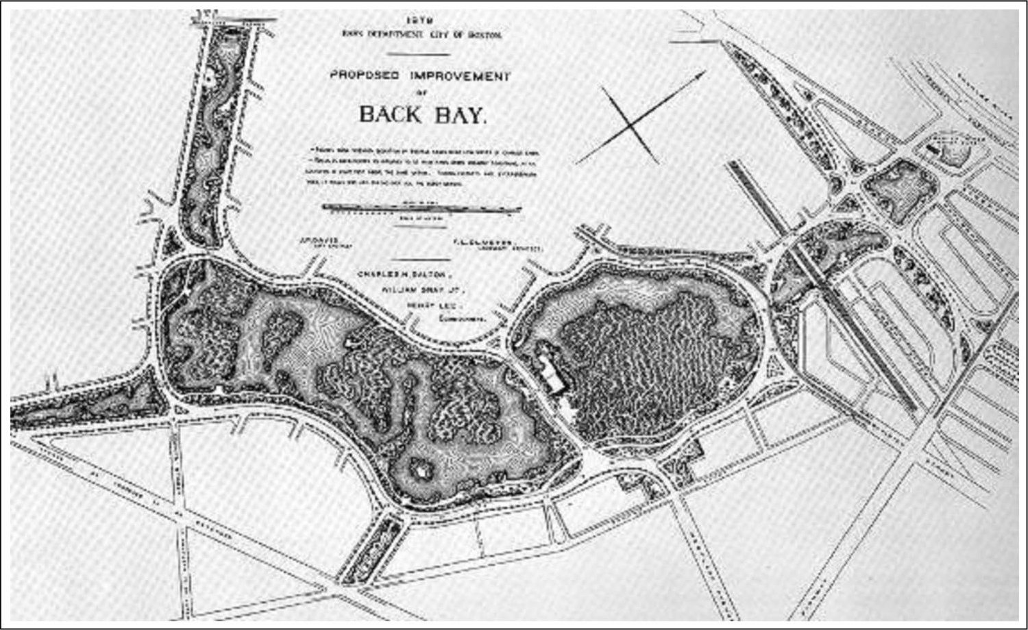 1879年,奥姆斯特德担任波士顿公园系统的设计师的首要任务就是结合泥河下游的环境改造工程(Muddy River Improvement),将“马萨诸塞州最为污秽的沼泽和多泥的河滩