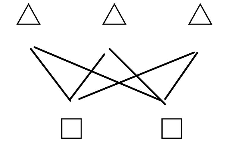 策略一:分别用△和□表示木偶娃娃和帽子,用连线的方式选配;