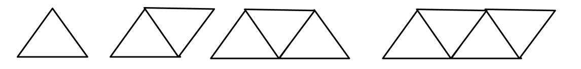 (1)按照图中的方式,摆 2 个三角形需要几根小棒?摆 3 个呢?