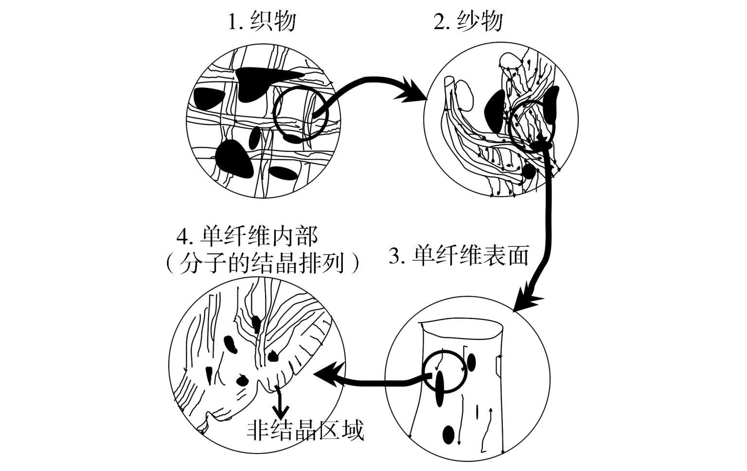 图3-1-1 污垢在服装材料上的附着模式