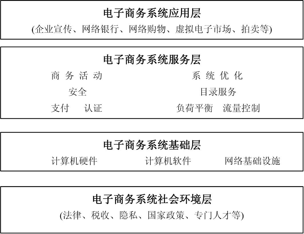 我们认为电子商务系统的框架结构可以分为四层,如图3-1所示。
