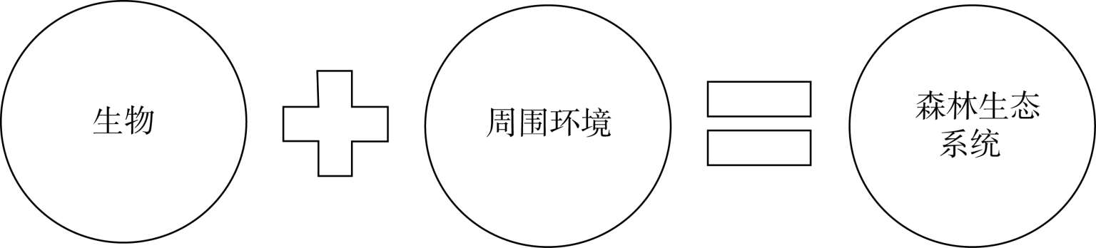森林是由生物(包括乔木、灌木、草本植物、地被植物及多种多样动物和微生物等)与它周围环境(包括土壤、大气、气候、水分、岩石、阳光、温度等各种非生物环境条件)相互作用形成的统一体。因此,森林是一个占据一定地域的、生物与环境相互作用的、具有能量交换、物质循环代谢和信息传递功能的生态系统。森林生态系统是许多生态系统(如草原生态系统、湿地生态系统、海洋生态系统等)中最重要的生态系统(如图 2-10所示)。