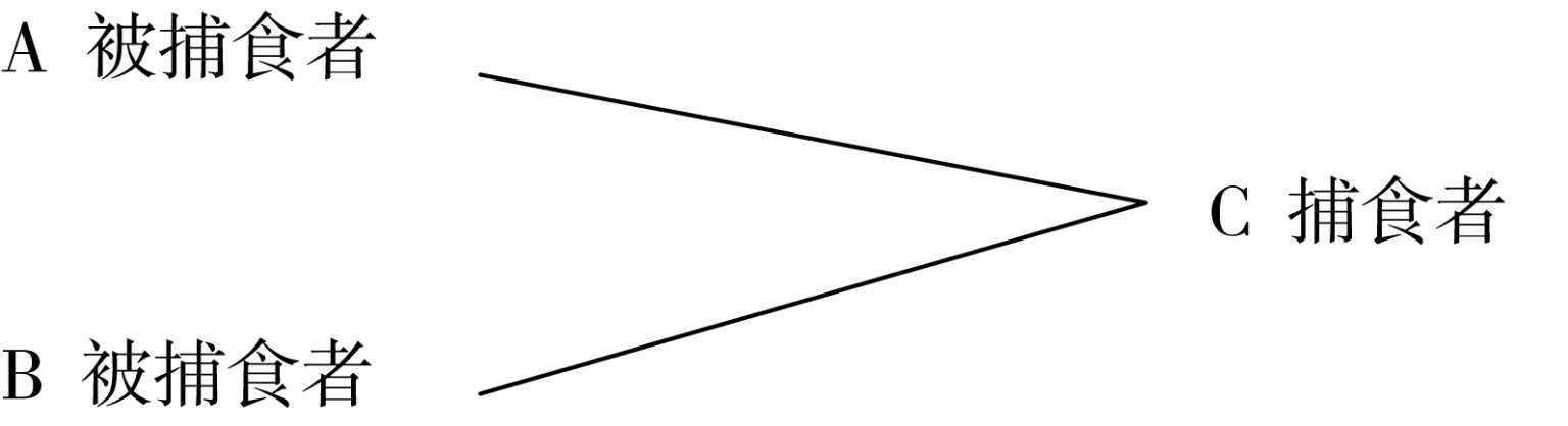 由上图可知:如果A种群数量减少时, C种群可以改食B种群而使A种群可以恢复,不至于使生态平衡受到严重的破坏。例如,草原上的野鼠,由于流行鼠疫而大量死亡,原来以捕鼠为食的猫头鹰不会因为鼠类的减少而发生食物危机。因为鼠类减少后,草类就大量繁殖起来,繁盛的草类又可以给野兔的生长和繁殖提供良好的环境,野兔的数量开始增多,猫头鹰把捕食的目标转移到野兔身上。