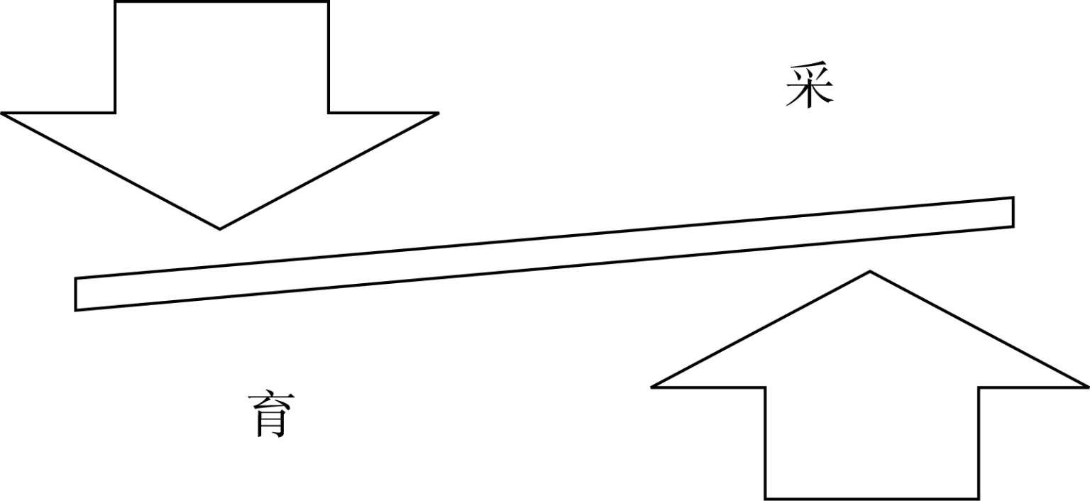 自人类诞生以来,人类就在森林中进行着一系列的活动,如早期的狩猎、采集、修巢。随着人类社会文明的发展,自然火和简单工具的使用,人类逐步从林中空地的原始农耕发展为今天的农业文明和工业文明,人类对森林的活动也逐步演变成为今天的采樵、采伐为主,以及相应的人工造林、抚育管理。概括地说,人类对森林的经营活动,是“采”和“育”的过程,两者是对立统一的(如图 2-13 所示)。