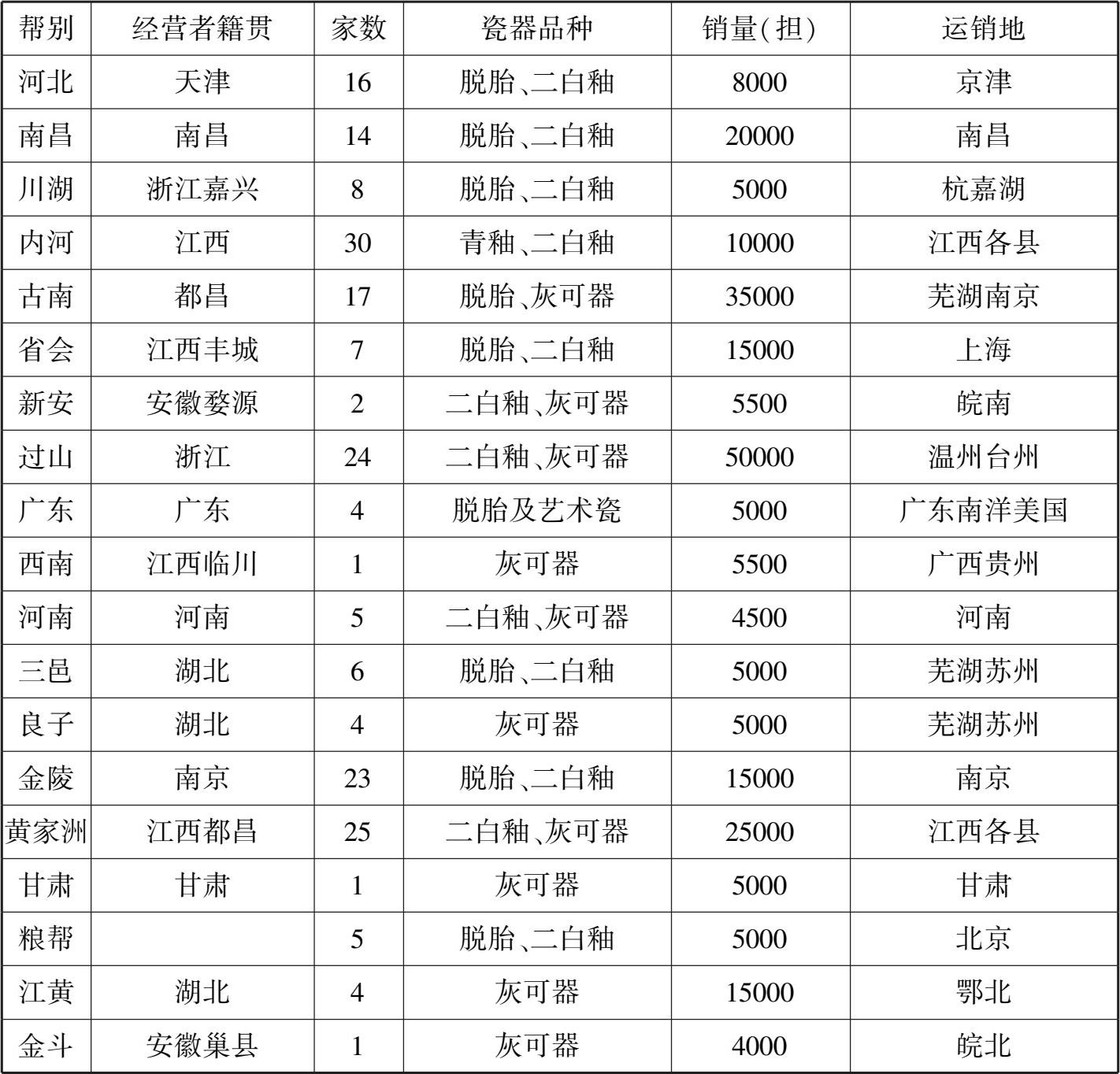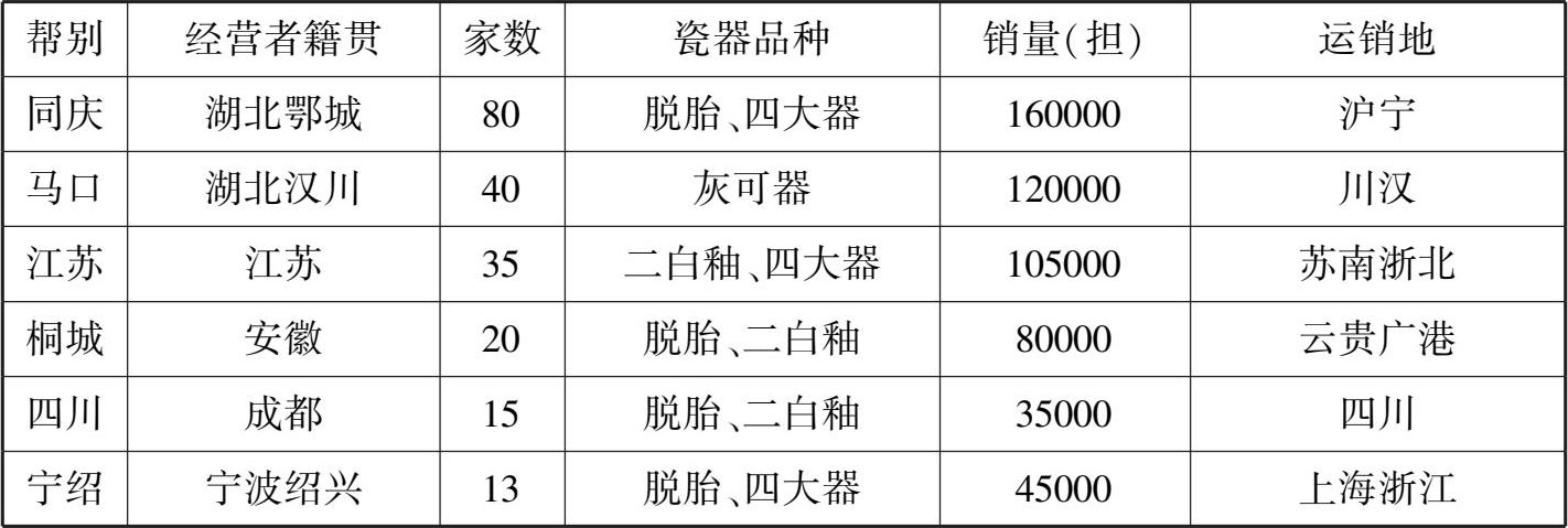 民国时期景德镇的庄客(瓷商)共有二十六帮,各帮分部情况各不相同。