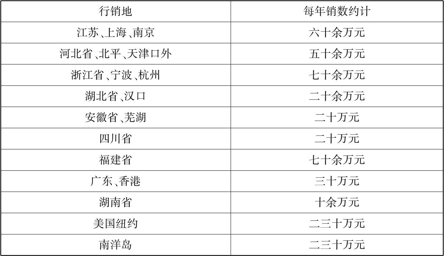 上表所列营销额,连外国在内,共计五六百万元。我们还可以通过 1927~1929 年报纸所载内容,