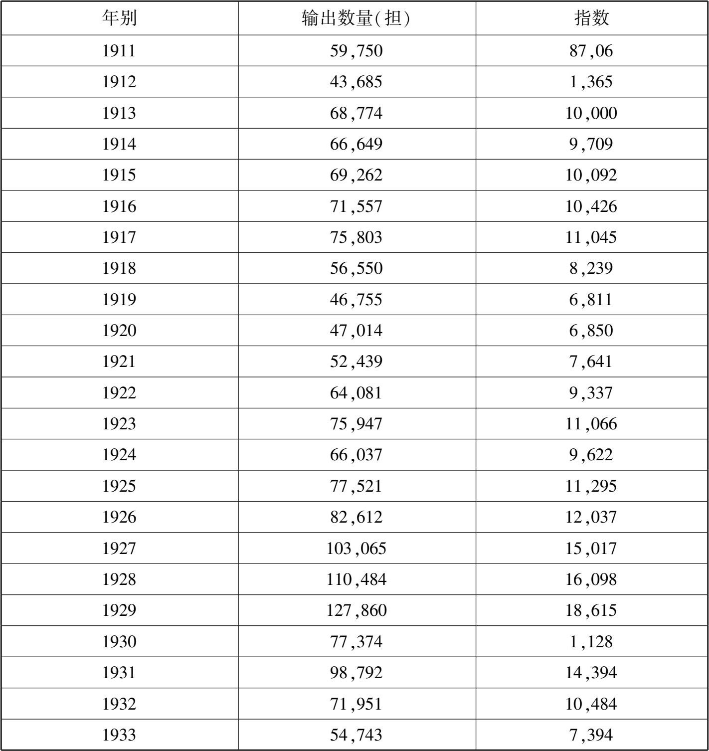 上表所列为 1911 年至 1933 年之间江西瓷器外销数据,