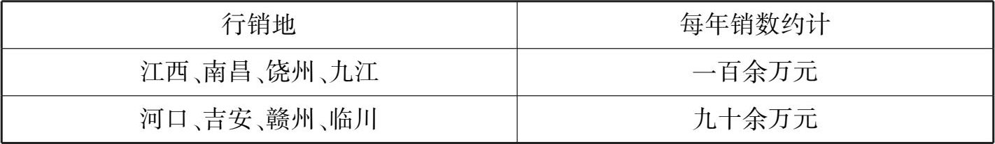 另据 1948 年出版的《江西工业概况》和 1934 年的《江西之瓷业》所记载的瓷器销售情况,列表如下: