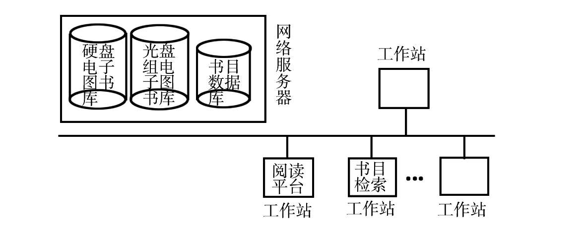 从图 1.3 -2 可以看出,这种大型电子图书馆是由若干中小型电子图书馆在信息高速公路的连接下组成的。它将是以信息高速公路为依托、以全国范围或地区范围的电子信息资源共享为前提的极其复杂的分布式系统。其中,书目检索系统可以对读者指定的一个书目集合进行相关程度排序。