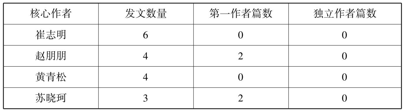 苏晓珂发表了 3 篇文章,其中 2 篇以第一作者身份发表,且苏晓珂发表的 3 篇论文中均有黄青松参加,说明这两位作者之间有比较紧密的合作关系,并在隐蔽网络研究领域内取得了优秀的成果。赵朋朋和苏晓珂是博硕士研究生,崔志明和黄青松是研究生导师。这四位核心作者主要从事智能信息系统、智能化信息处理方面的研究。