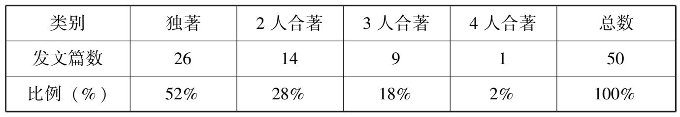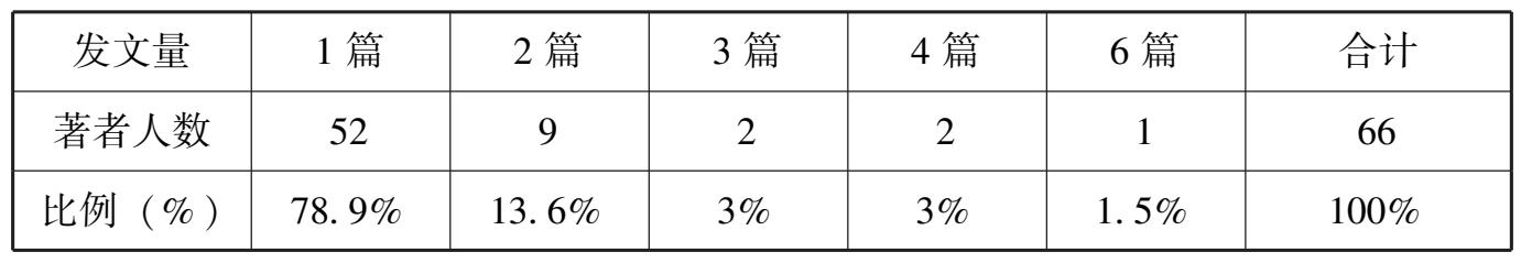 在所统计的 50 篇论文中,共有作者 66 人,其中以第一著者身份发表的有 45 位。