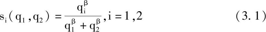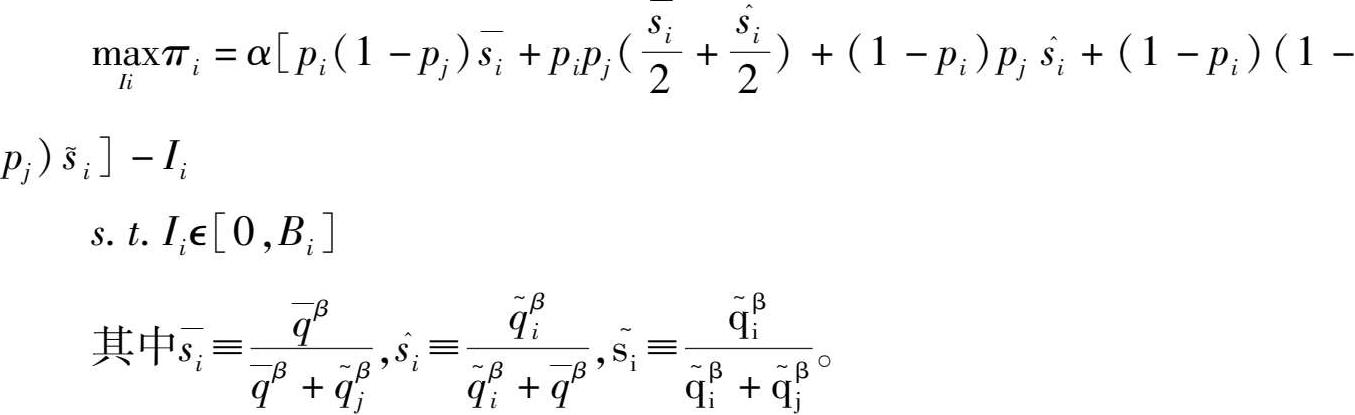 其中, q i 为厂商 i 的产品质量。由于生产性决策不是本章分析的重点,因而这里简单地假设 s i 就是厂商 i 所能获得的生产性利润。