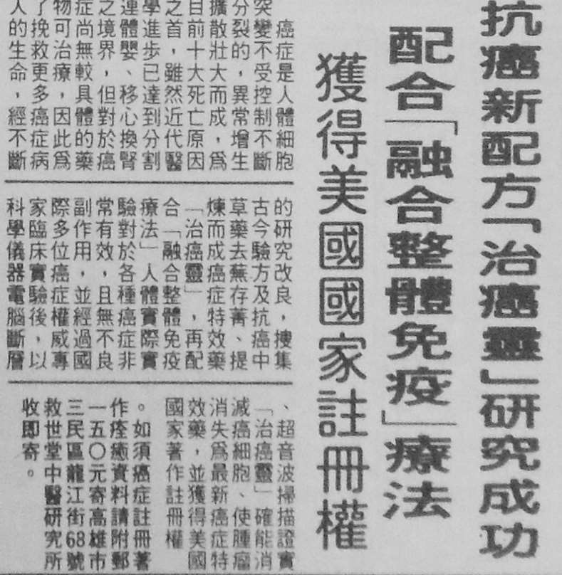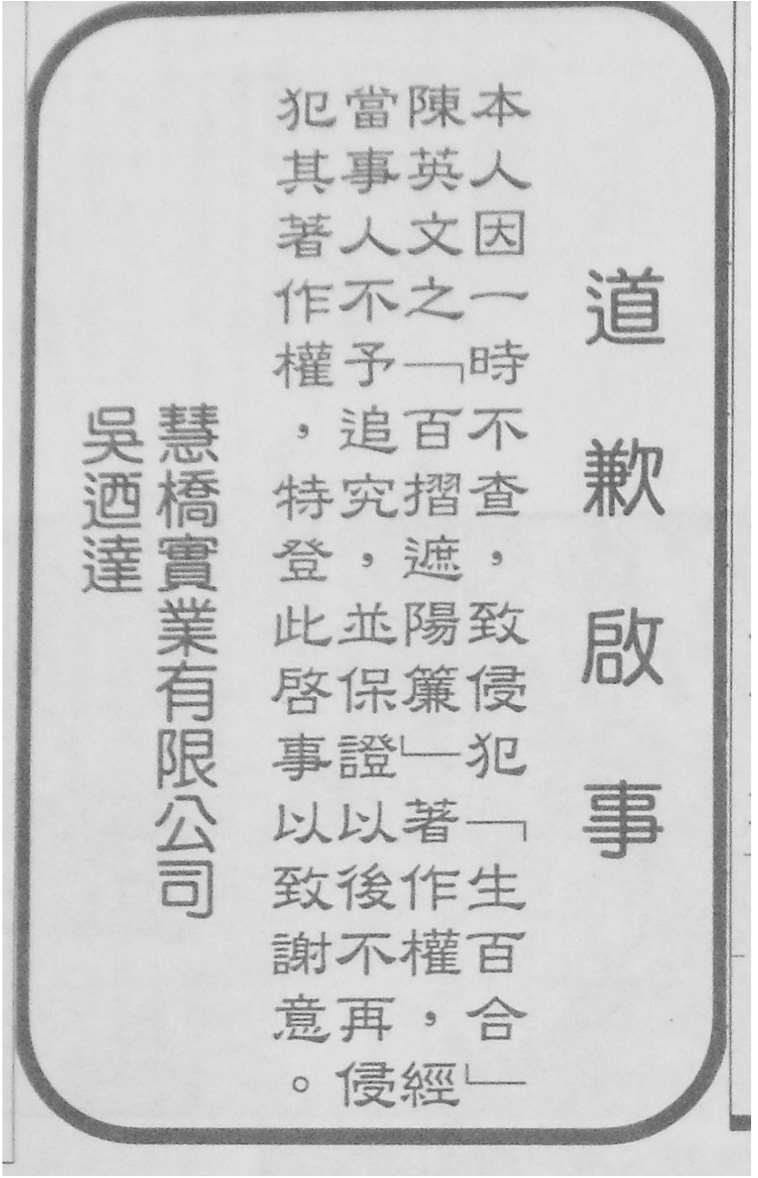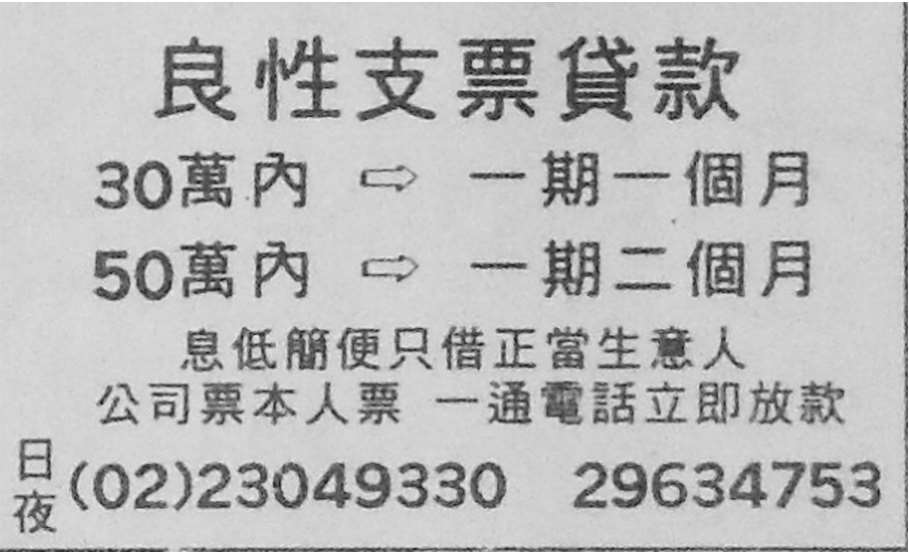 图3-72:套红记为2 和黑白记为1(《中国时报》,1992 年7 月30 日第8 版)