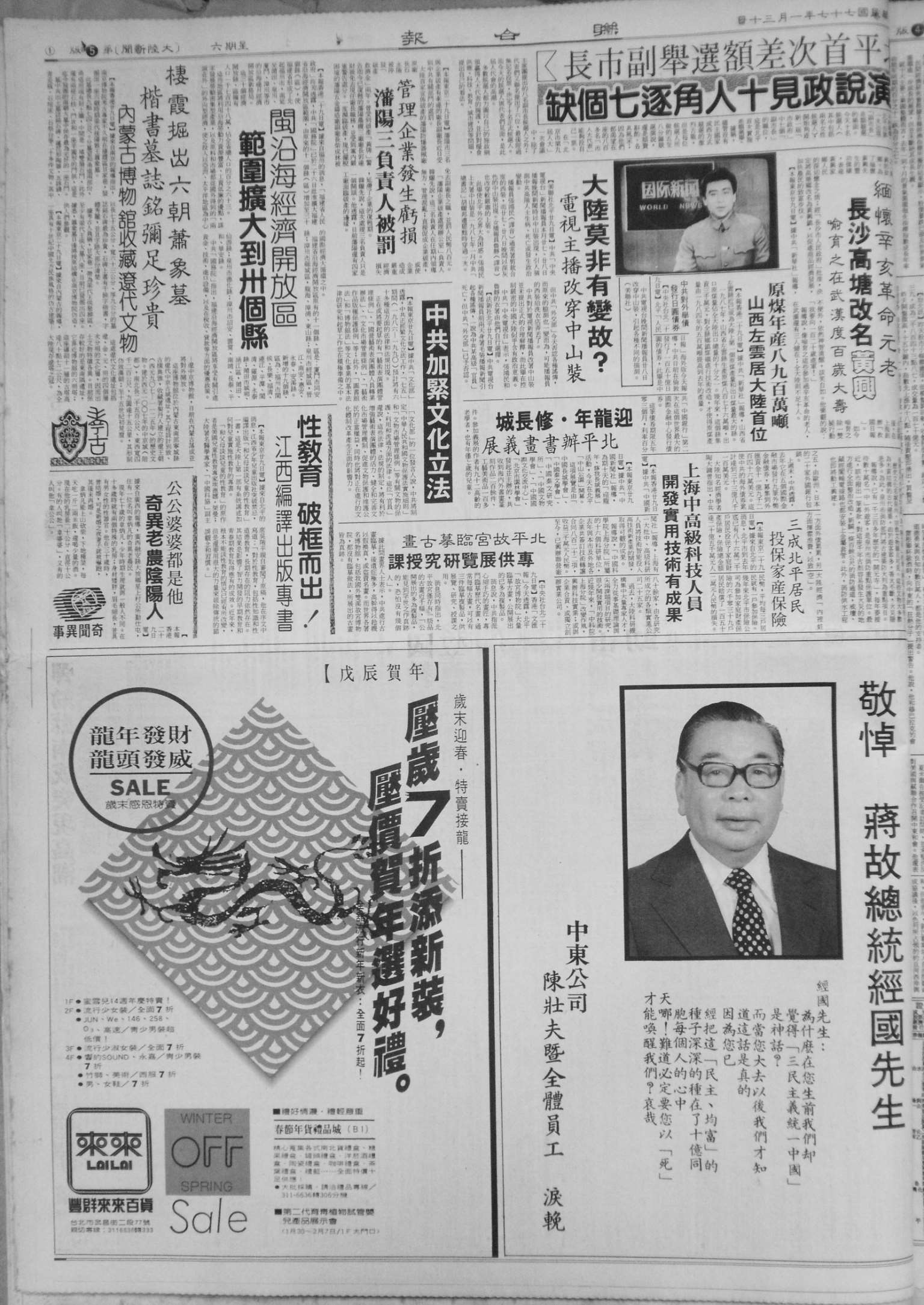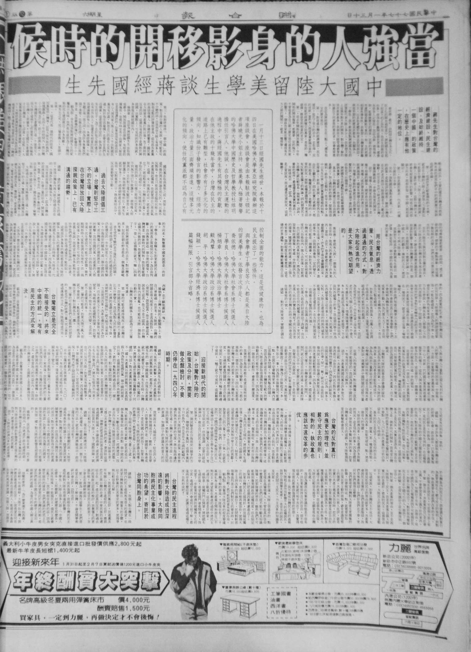(《联合报》,1989 年 1 月 30 日第 19 版)