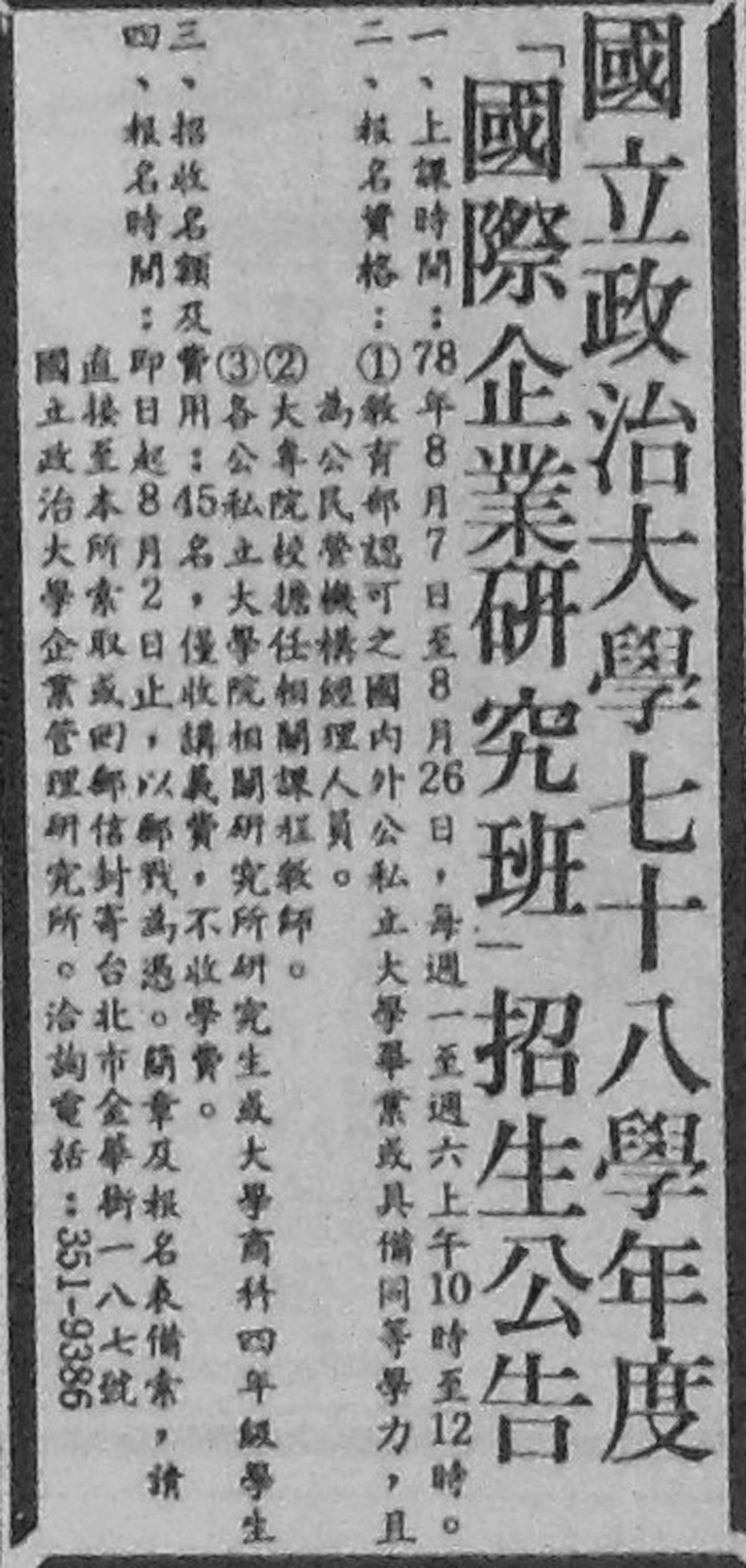 图3-21:教育出国培训记为 18(《联合报》,1988 年 7 月 30 日第 21 版)