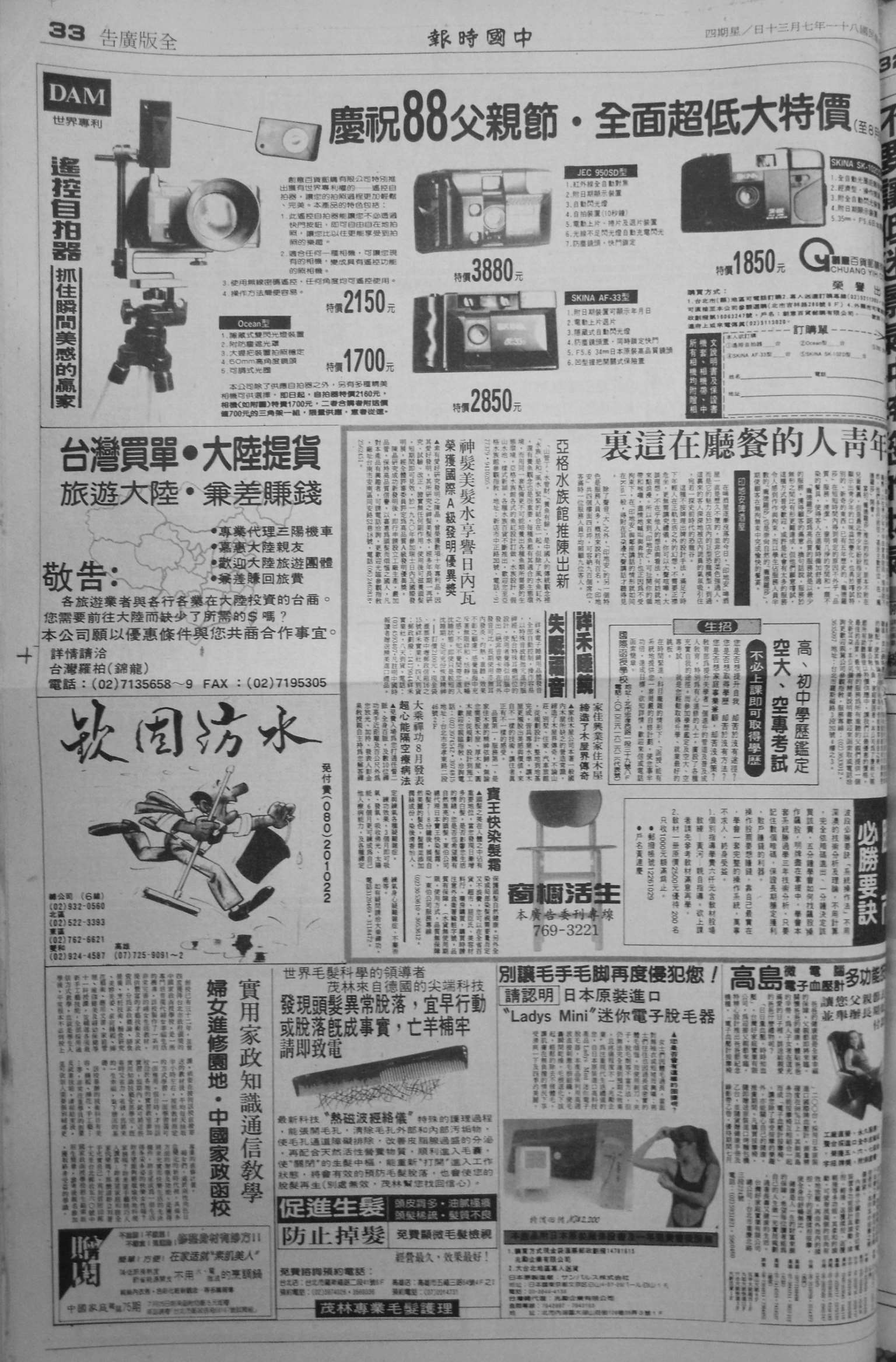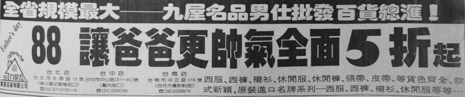 图3-54:《庆祝 88 父亲节》,1 /3 版记为 8(《中国时报》,1992 年 7 月 30 日第 33 版)