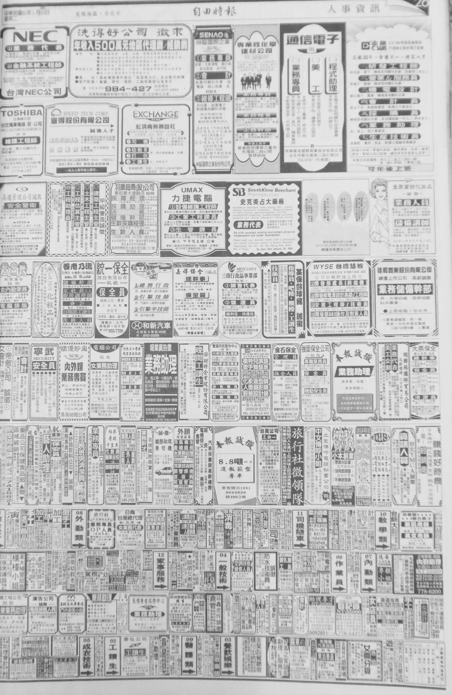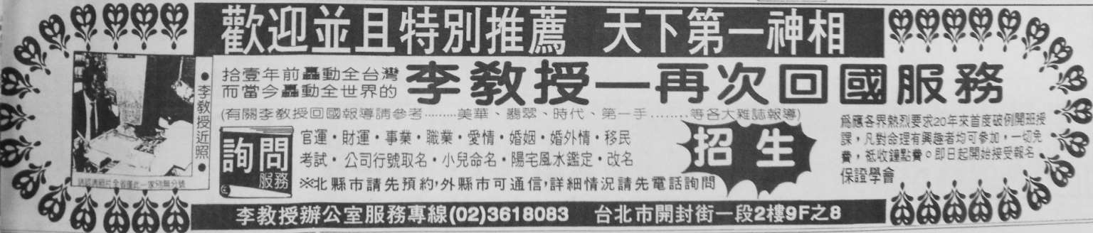 图3-61:广告版记为 6(《自由时报》,1996 年 1 月 30 日第 26 版)