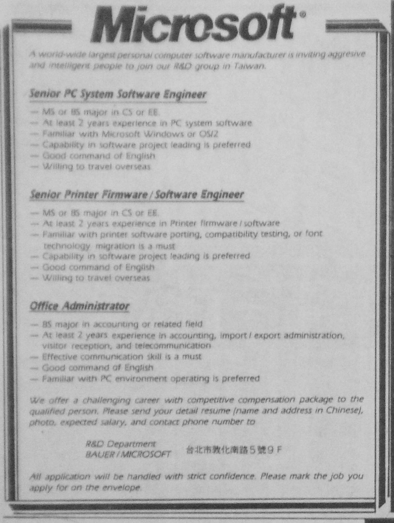 图3-36:美国企业记为 2-微软招聘(《联合报》,1989 年 7 月 30 日第 31 版)