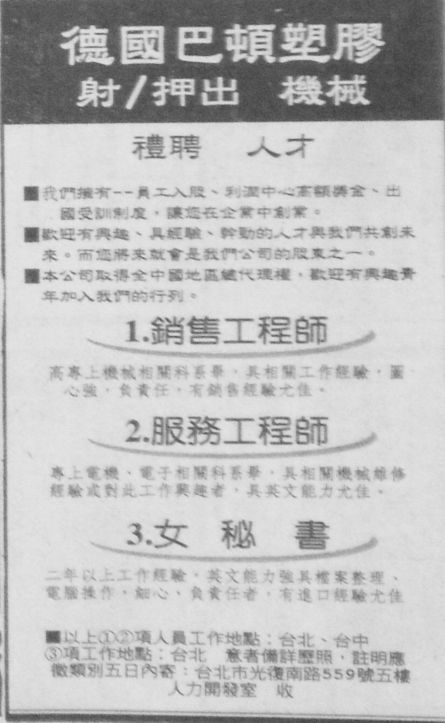 图3-37:欧洲企业记为 3-巴顿塑胶(《联合报》,1993 年 1 月 30 日第 38 版)