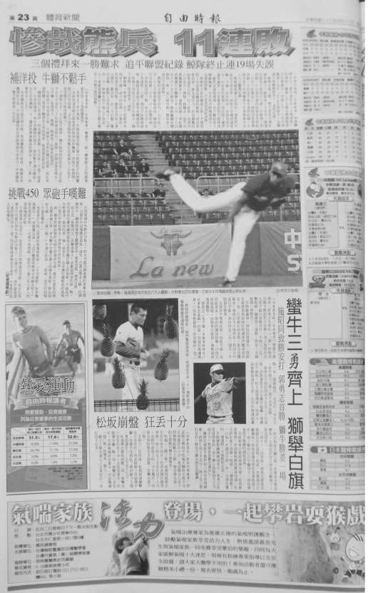 图3-58:体育版记为3(《自由时报》,2004 年4 月30 日第23 版)