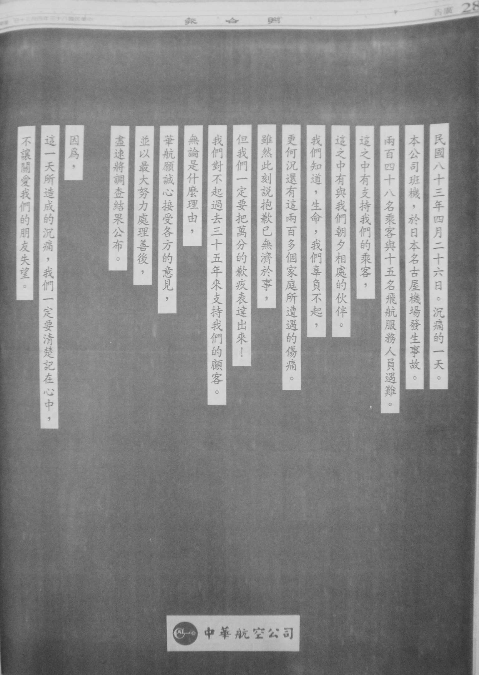 图3-20:飞机航空记为 17(《联合报》,1990 年 7 月 30 日第 8 版)