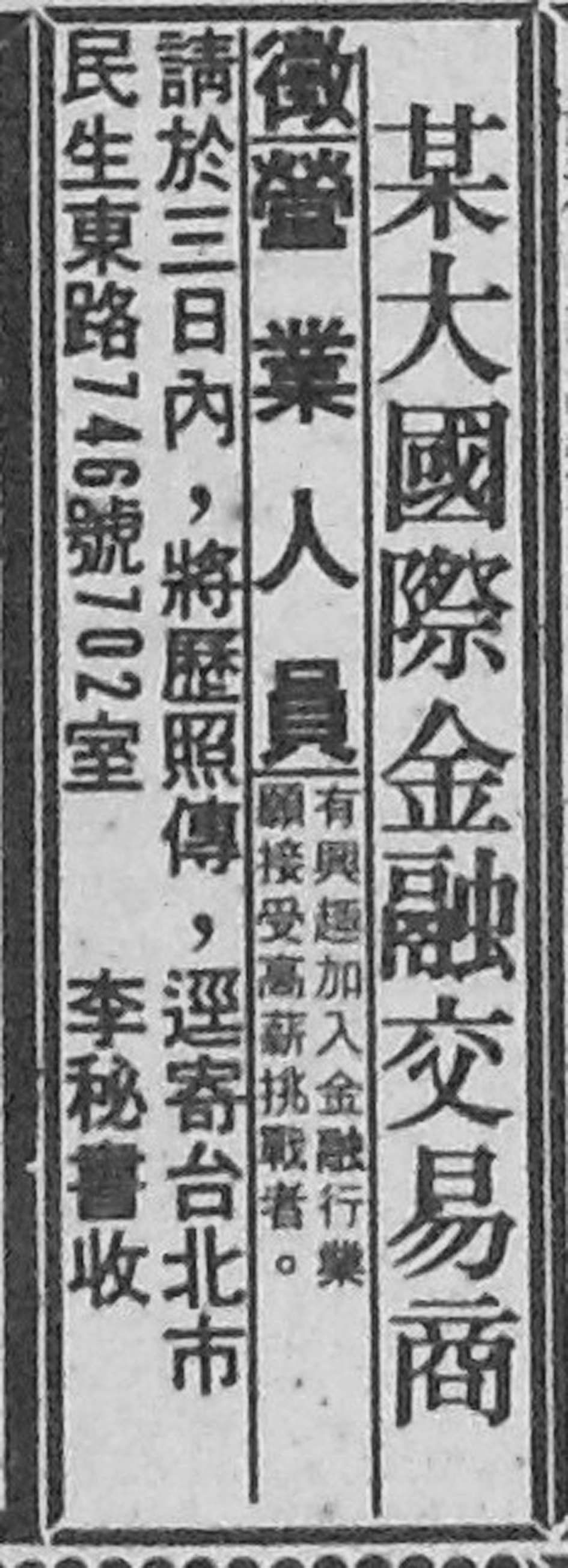 图3-7:招聘招标启事展销记为 4(《联合报》,1994 年 4 月 30 日第 31 版)