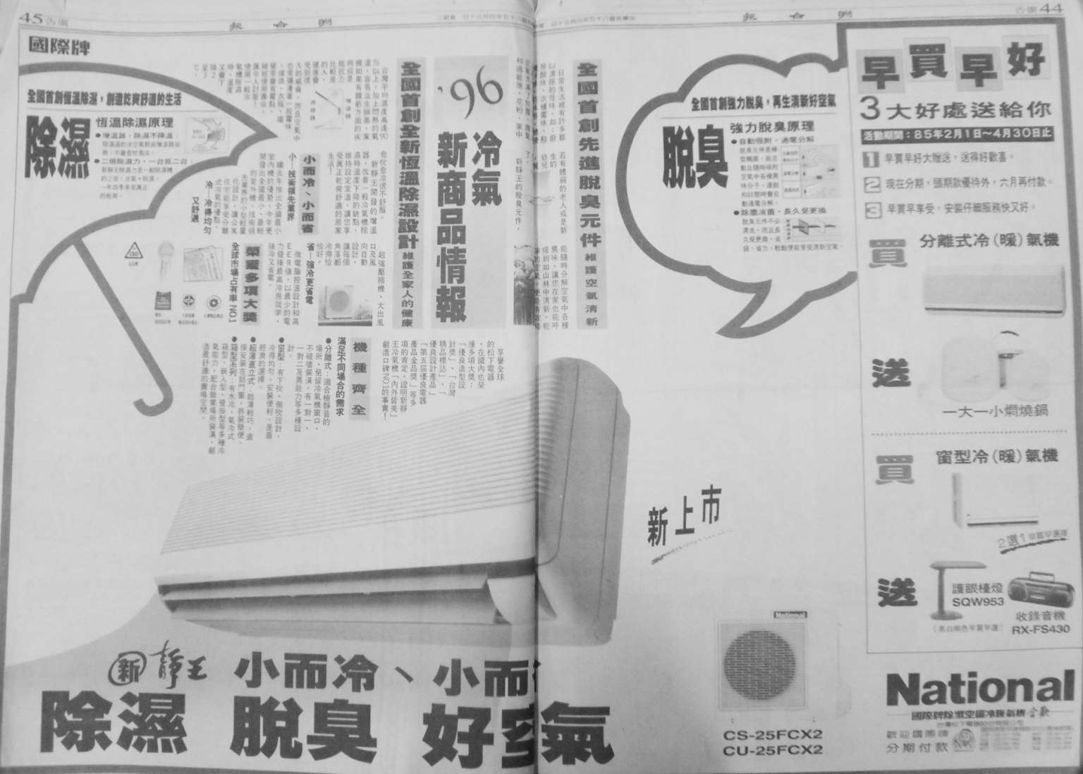 图3-48:跨版记为 1(《联合报》,1996 年 4 月 30 日第 44、45 版)