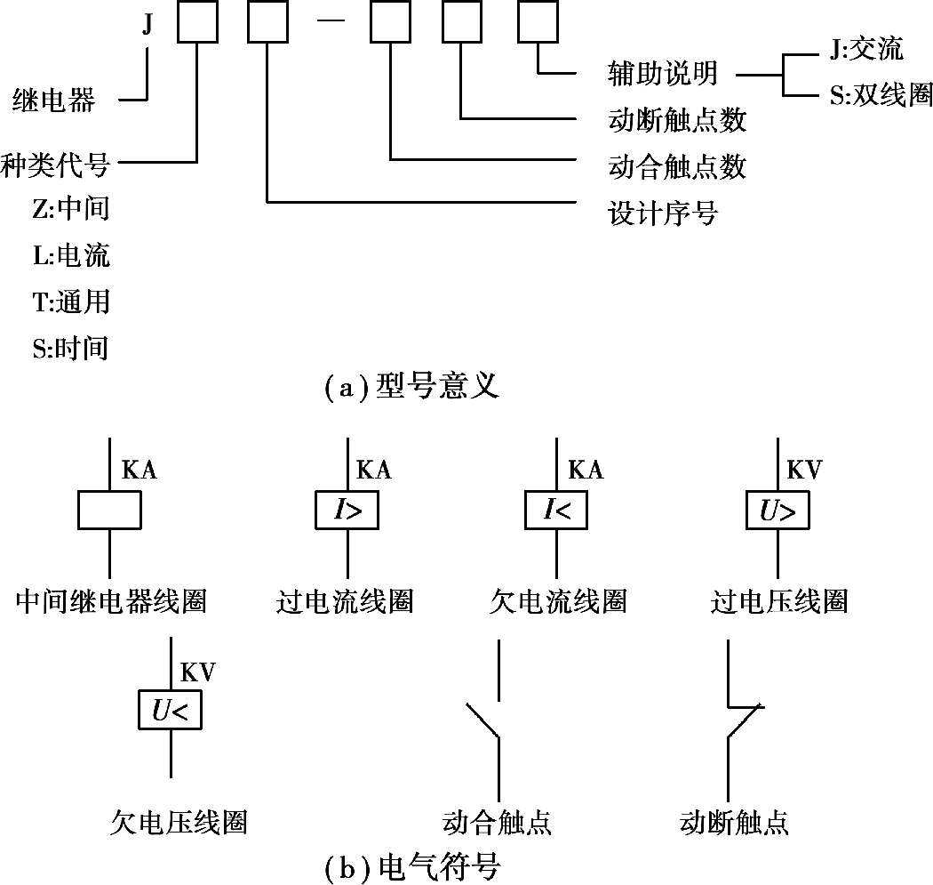 电磁式继电器型号的含义和电气符号如图1.30 所示。